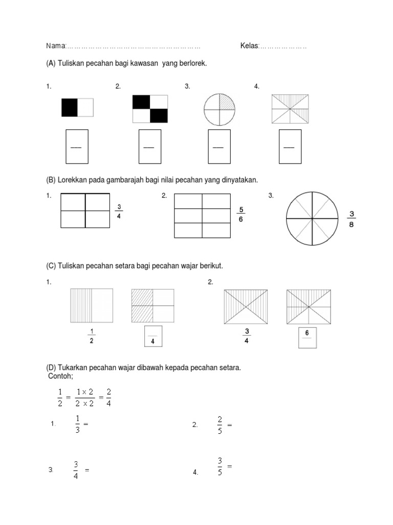 Latihan Perpuluhan Matematik Tahun 2 Math Worksheets Worksheets Fractions